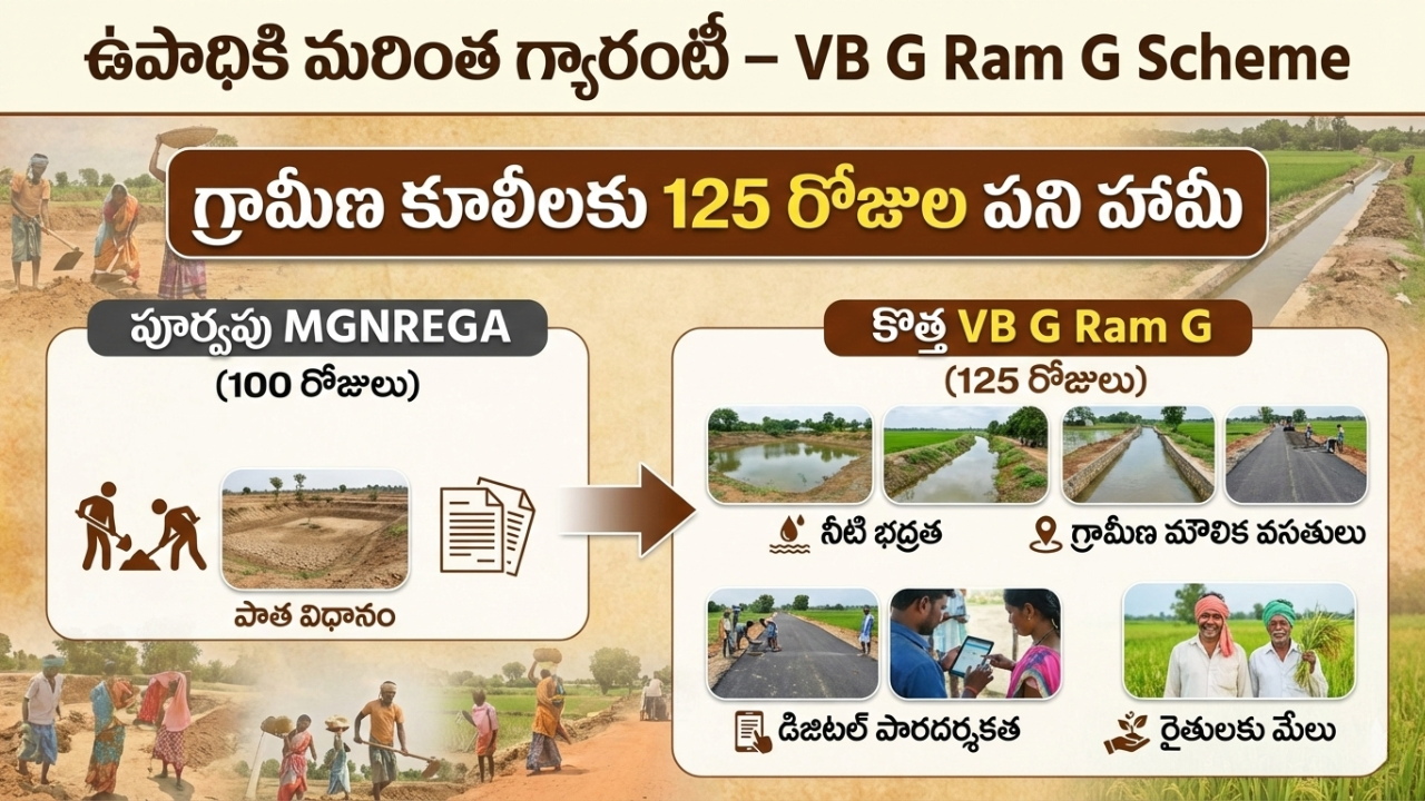 భారతదేశ గ్రామీణ ఉపాధి వ్యవస్థలో చారిత్రాత్మక మార్పుకు కేంద్ర ప్రభుత్వం శ్రీకారం చుట్టింది. ఇప్పటివరకు కోట్లాది గ్రామీణ పేదలు, కూలీలకు జీవనాధారం కల్పించిన **మహాత్మాగాంధీ జాతీయ గ్రామీణ ఉపాధి హామీ పథకం (MGNREGA)**కు కొత్త రూపం ఇచ్చింది. ఇక నుంచి ఈ పథకం **“వికసిత్ భారత్ – గ్యారంటీ ఫర్ రోజ్‌గార్ అండ్ అజీవిక మిషన్ (గ్రామీణ్)”**గా అమల్లోకి రానుంది. దీనినే సంక్షిప్తంగా VB G Ram G Schemeగా పిలుస్తున్నారు.